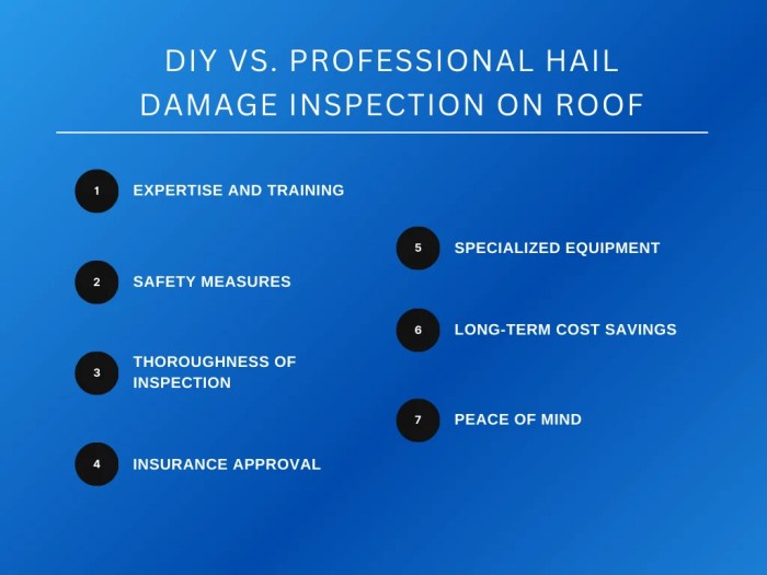 - While the time spent on a professional repair is minimal compared to a DIY project, the effort required is significantly lower as well. Professionals have the skills and resources to tackle hail damage effectively and efficiently.
